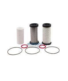 The second stage coalescing filter eliminates atomized oils, mists, ultra-fine particulates, and has an auto drain.