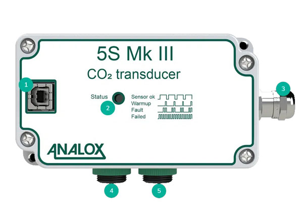 The 5S MkIII carbon dioxide (CO2) sensor is used within other Analox products including our SDA carbon dioxide (CO2) monitor as an OEM solution, it is utilized by other analyzer manufacturers and as an ambient carbon dioxide (CO2) sensor connecting to a control panel.