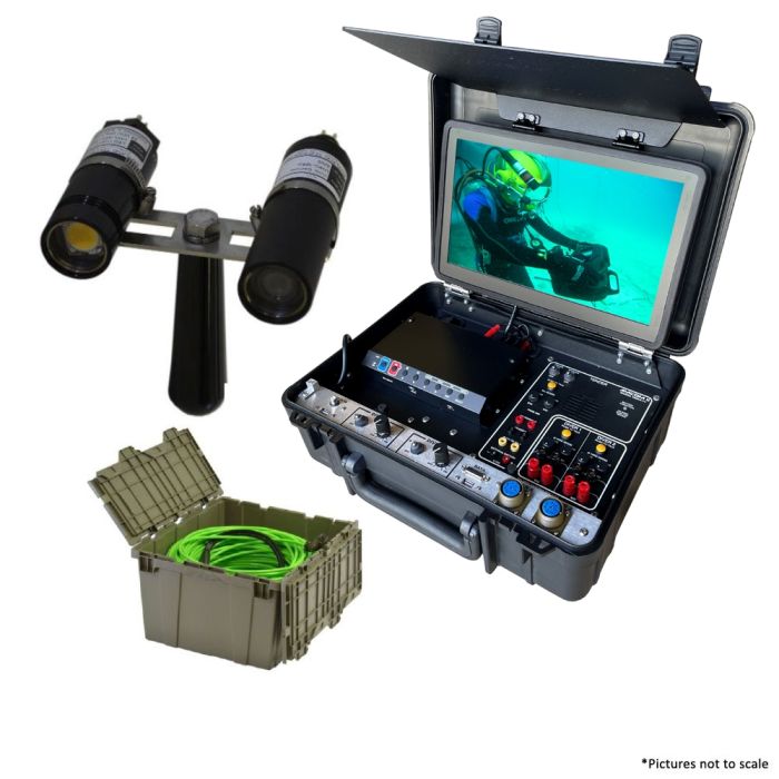 Outland Technology OTI-UWS-3710 Complete Portable High Definition Single Diver Video System with Amron Radio complete with UWC-330/P, UWL-401, DHM-60, C-2303-150m, CON-3500/D.